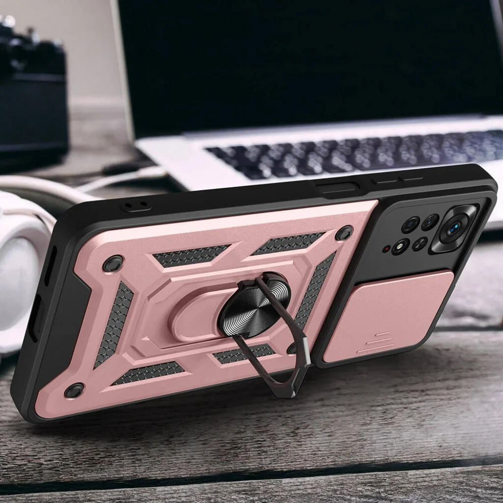 Xiaomi Redmi Note 11 Pro 4G Kılıf Magnetik Standlı Kamera Korumalı Sürgülü Vega Kapak