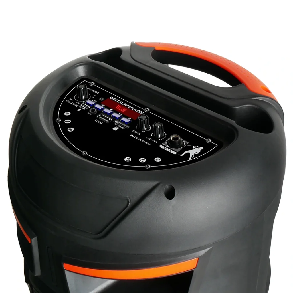 Çift 8 inç hoparlörleri ve 20W ses çıkışı ile etkileyici bir bas deneyimi sunar. Bluetooth 5.0 teknolojisi sayesinde kesintisiz bağlantı sağlarken AUX, USB ve TF kart girişleri ile farklı cihazlardan müzik dinleme imkânı sunar. Kablosuz mikrofonu ile karaoke keyfi yaşatır ve geniş frekans aralığı sayesinde her ses tonunu mükemmel bir şekilde iletir.
