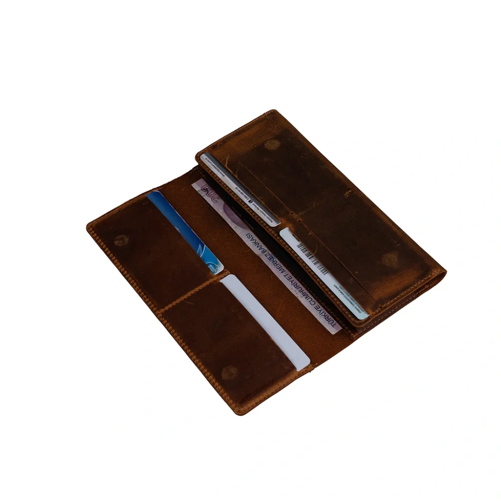 Günlük hayatınızı kolaylaştıran bu özel cüzdan, telefon ve kart taşıma ihtiyacınızı tek bir yerde topluyor. Nubuk deri malzemesiyle zarif bir görünüm sunarken, güçlü dikiş detayları ve dayanıklı yapısıyla uzun ömürlü bir kullanım sağlıyor.