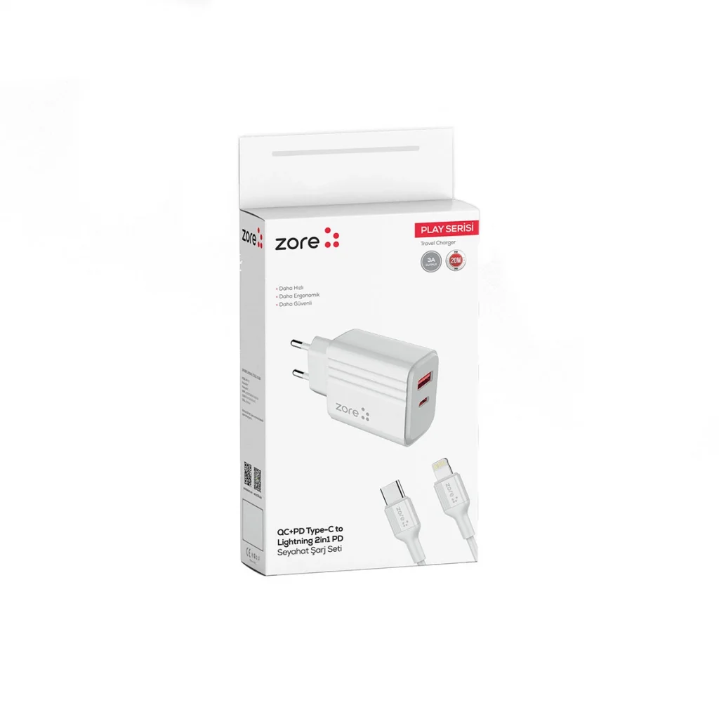 Zore Play Serisi PL08 Type-C to Lightning 2in1 PD Seyahat Şarj Aleti 20W